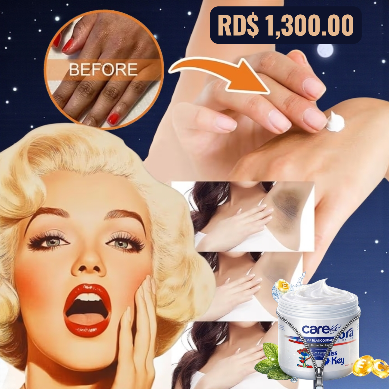CREMA ACLARADORA 3 EN 1 MISS KEY CARE KEY Fórmula avanzada que combina tres beneficios esenciales en un solo producto.